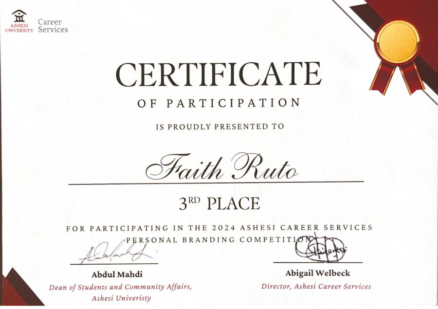2nd Runner-up in Personal Branding Competition | Ashesi University | Issued 2024