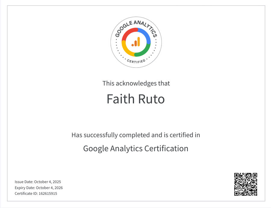 I translate complex datasets into actionable insights that enable informed decision-making. My work extends beyond technical analysis to ensuring that results are clearly communicated and operationalized through structured reporting, effective data storytelling, and insight-driven narratives.My experience includes exploratory analysis to surface meaningful patterns, identifying strategic opportunities, and supporting evidence-based decisions across business and development contexts. I also leverage AI tools to augment analytical workflows, improving efficiency, rigor, and the consistency of reporting and insight generation.Alongside my technical work, I create and share practical content that helps students and early-career professionals learn how to use data and AI tools to strengthen their career prospects and contribute to social impact. Through building and contributing to early-stage ventures, I have developed a strategic mindset and the ability to operate in dynamic environments. I am motivated by applying data and AI tools to real-world challenges and contributing to initiatives that deliver measurable, lasting impact.